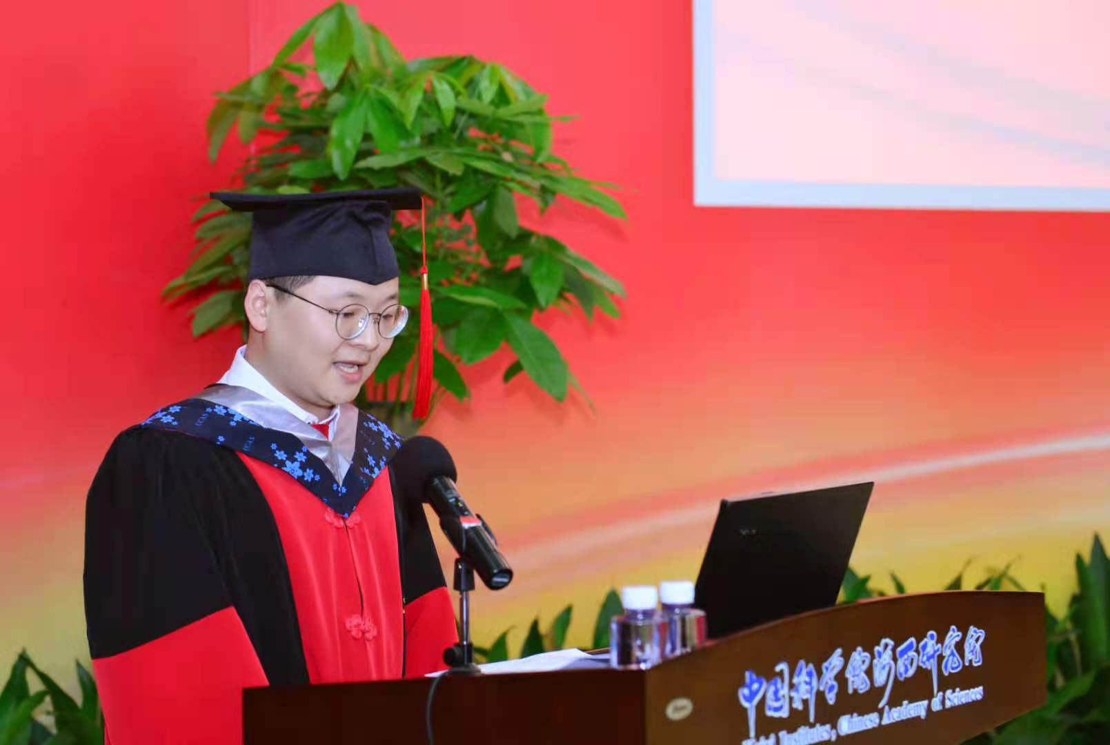 朱起龙研究员作为导师代表发言,他对毕业生们表达了诚挚的祝贺,并寄语同学们在不同的前行道路上,始终保留最珍贵的财富,即“接受现实的勇气”“从容前进的坚守”和“仰望星空的姿态”。他希望同学们永远心中有爱、眼中有光,怀揣理想、拼搏奋斗,为国家和社会做出更大的贡献。