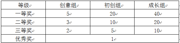 (一)项目奖为:一等奖、二等奖、三等奖和优秀奖,其中创意组、初创组、成长组一等奖各1名,二等奖各2名,三等奖各3名,并设优秀奖若干名。其中奖励金额如下表所示: