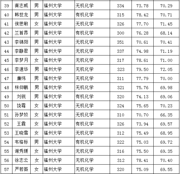 根据我所与高校联合培养研究生协议及复试规程的相关规定,经中科院福建物质结构研究所研究生招生工作领导小组审议,2017年与高校联合培养硕士生拟录取名单如下: