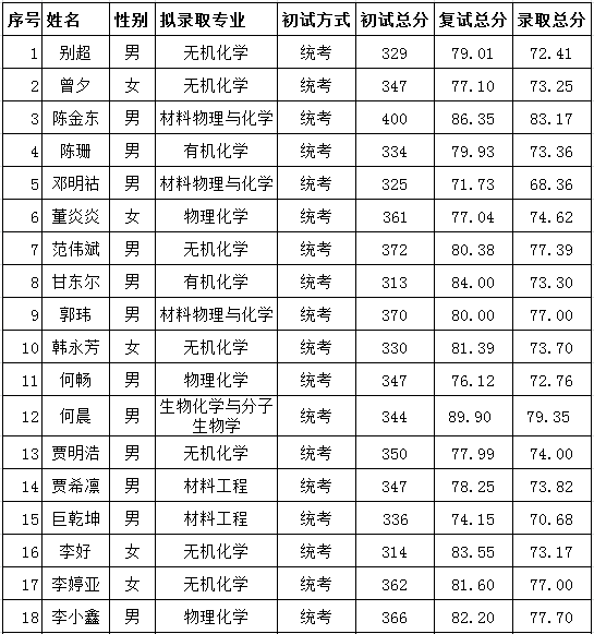 根据我所2017年招收攻读硕士学位研究生复试规程的相关规定,经中科院福建物质结构研究所研究生招生工作领导小组审议,2017年硕士研究生拟录取名单如下:
