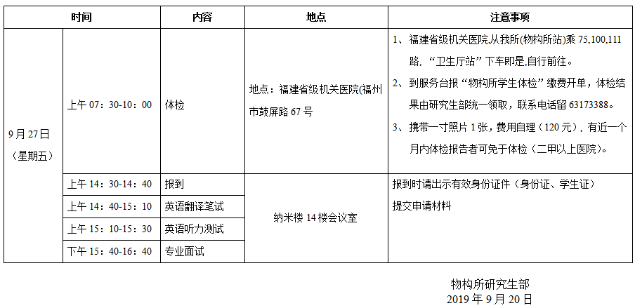 中科院海西院2020年推免生复试日程安排