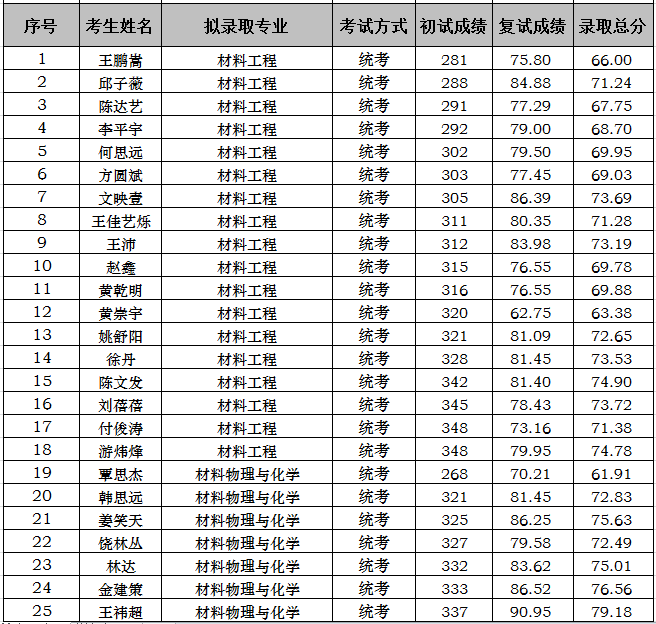 根据我所2018年招收攻读硕士学位研究生复试规程的相关规定,经中科院福建物质结构研究所研究生招生工作领导小组审议,2018年硕士研究生拟录取名单如下: