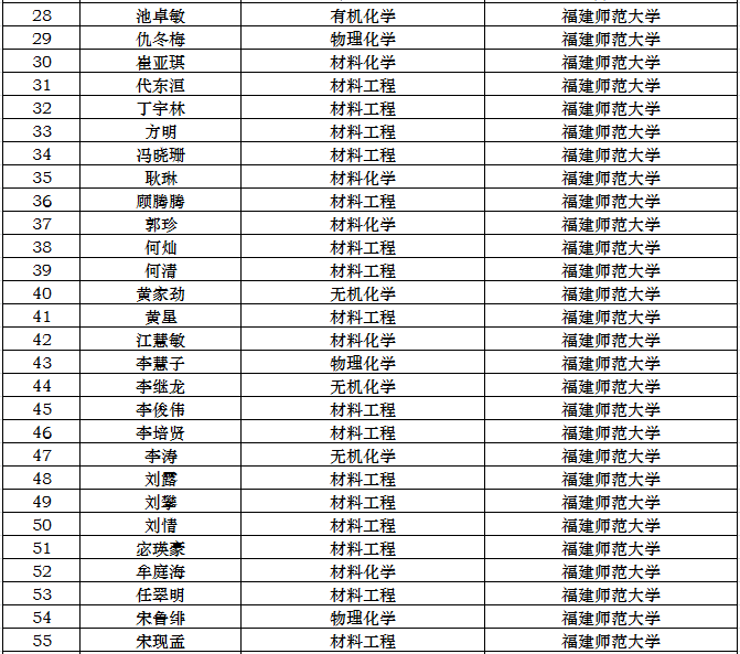 根据我所与高校联合培养研究生协议及复试规程的相关规定,经中科院福建物质结构研究所研究生招生工作领导小组审议,2018年与高校联合培养硕士生拟录取名单如下: