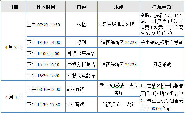 注意:前台说明物构所复试体检