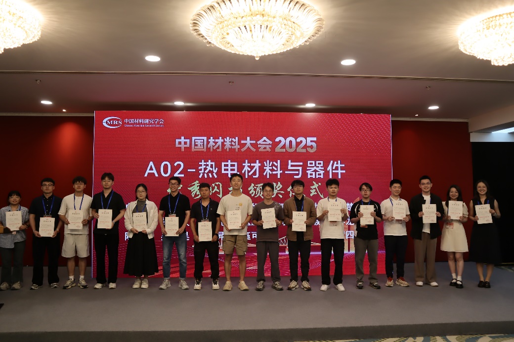 经组委会专家与主持人严格评审,大会评选出21名优秀快闪报告奖与10名优秀墙报奖得主,以激励热电领域杰出青年学者。罗中箴教授主持颁奖仪式并宣读获奖名单,林悦研究员为获奖者颁奖并合影留念。至此,2025中国材料大会热电材料与器件分会场在浓厚的学术氛围中胜利闭幕。