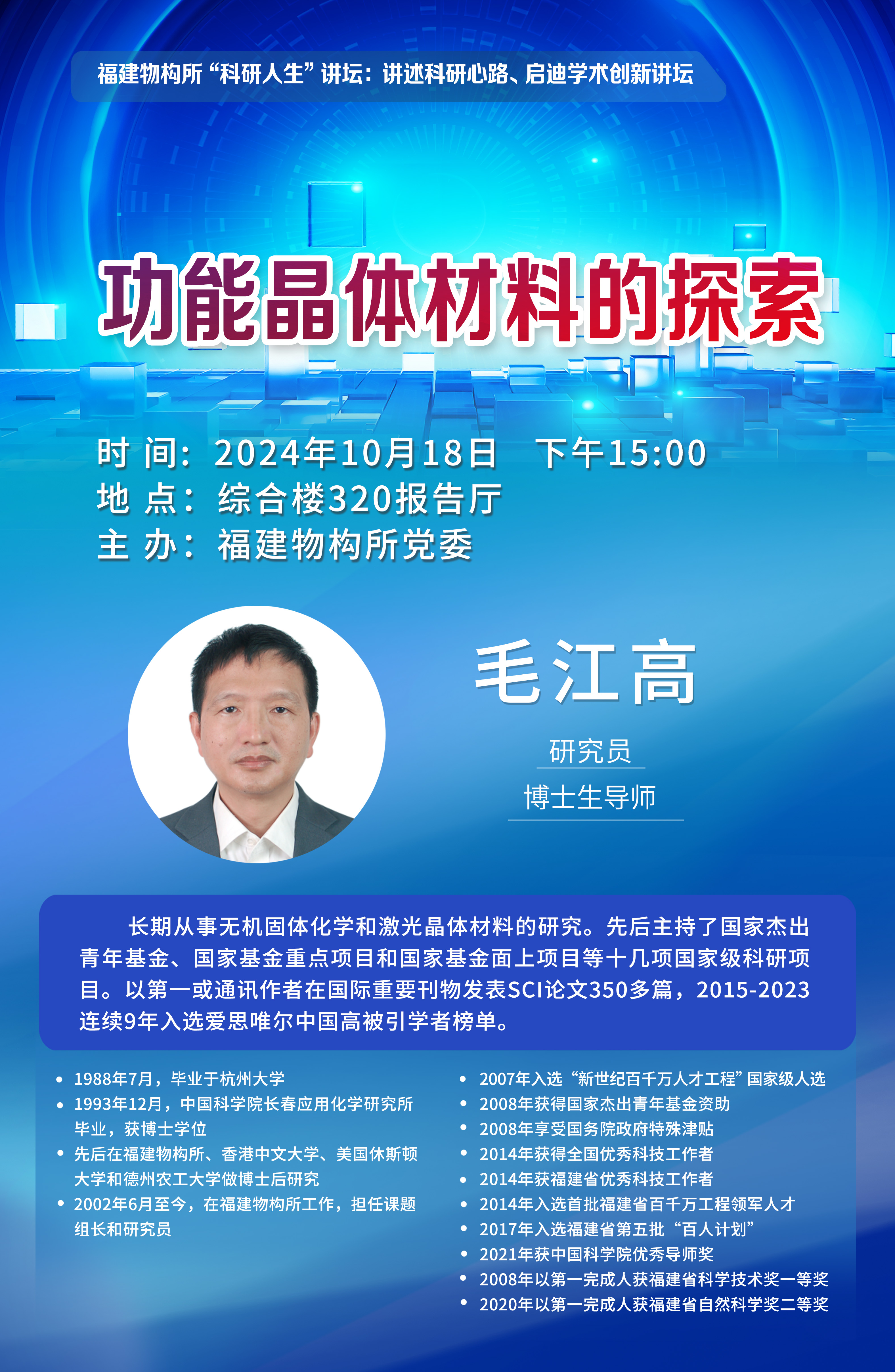 • 福建物构所“科研人生”讲坛:功能晶体材料的探索