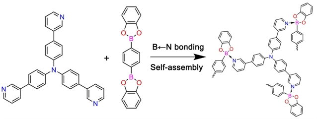 如图1所示,BNF-1由吡啶单体3-TPPA和硼酸酯单体BACT通过配位氮硼键连接而成,形成二维层状结构。