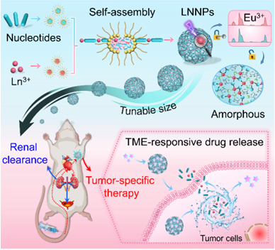 图1、稀土-核苷酸自组装纳米颗粒(LNNPs)的胶束模板法制备及肿瘤微环境响应的药物递送策略示意图。