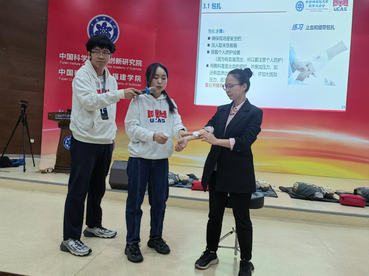本次“心动国科大”急救培训活动由国科大基金会文化建设部主任董博红,国科大基金会文化建设部主管雷园园带领“心动国科大”团队走进中国科学院福建物质结构研究所。