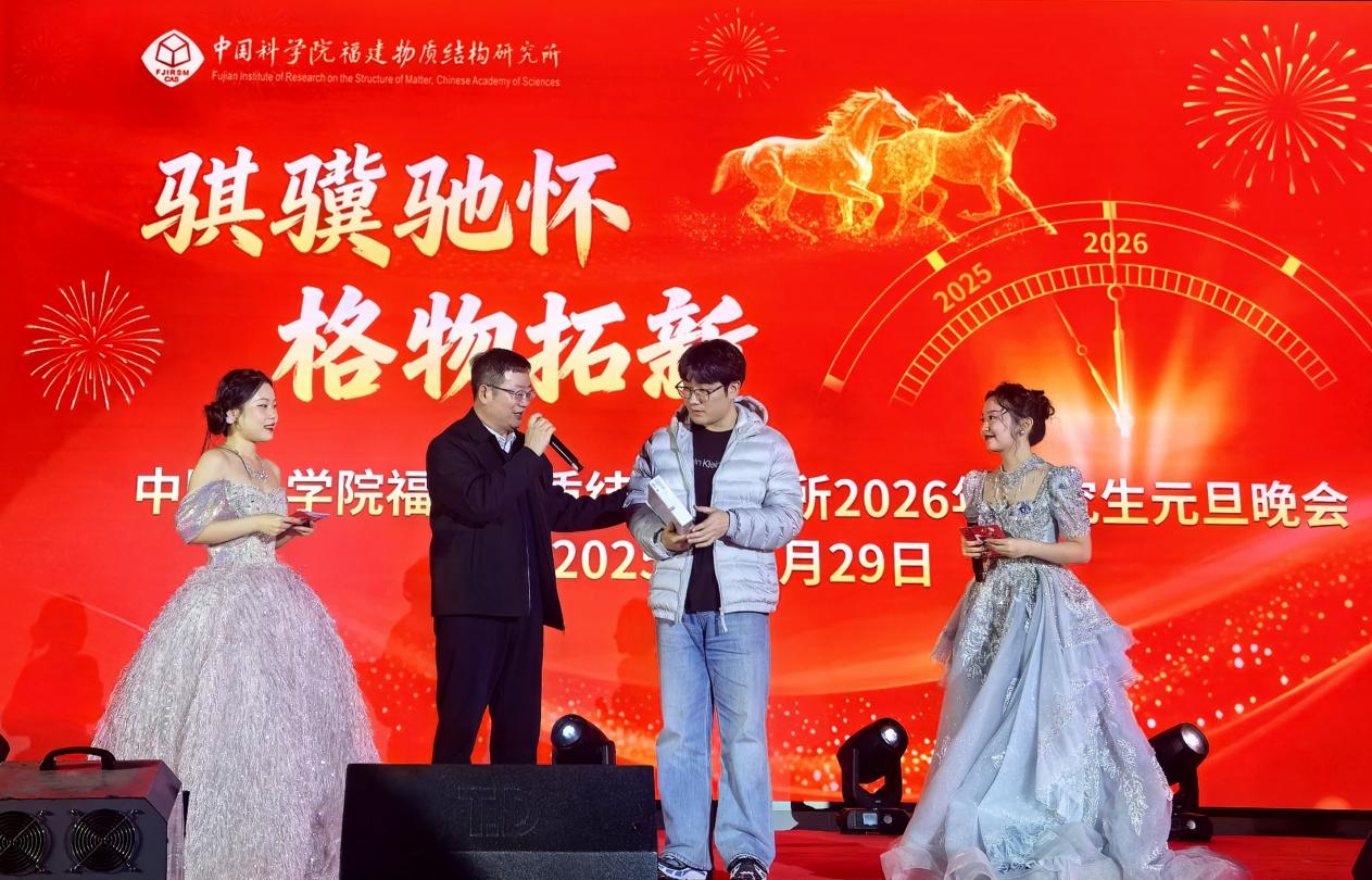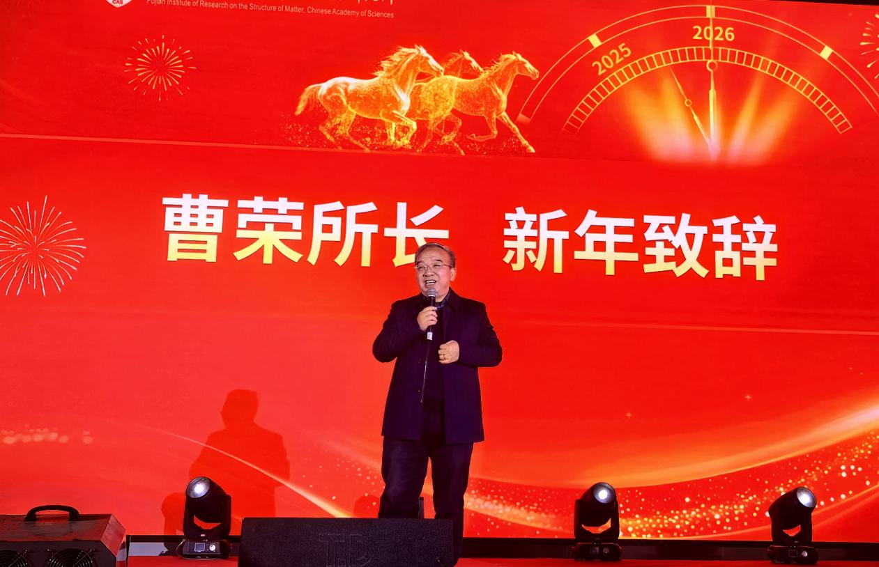 灵蛇摆尾辞旧岁,骏马扬蹄迎新年。12月29日晚,中国科学院福建物质结构研究所(以下简称“福建物构所”)2026年研究生元旦晚会在高新园区综合楼报告厅隆重举行。所长曹荣、纪委书记于申、所务委员吴少凡、导师代表、管理支撑部门老师与研究生等700余人欢聚一堂,共迎新春。
