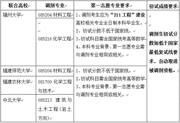 中科院海西研究院(福建物构所)与高校联合招收研究生拟接收以下专业调剂生,具体要求如下: